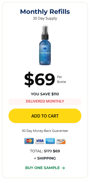 Absolutely. NeuroQuiet comes with a 90-day money-back guarantee. If you’re not satisfied with your results for any reason, even after using the product daily, you can request a full refund with no hassle. This risk-free policy ensures that you can try NeuroQuiet with complete confidence, knowing your investment is protected.